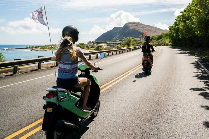Ride a moped along Oahu’s coast to beaches, falls and city streets