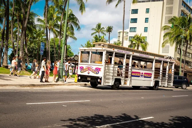 No hotel pickup is included; you start from central Waikiki where the trolley departs.