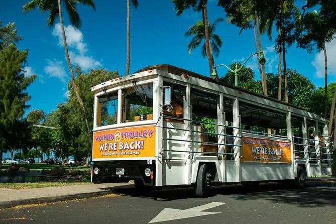 Hop on a classic Waikiki trolley for coast views and local flavors