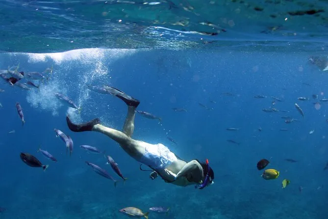 You may spot dolphins year-round, sea turtles, tropical fish while snorkeling, and humpback whales during winter months.