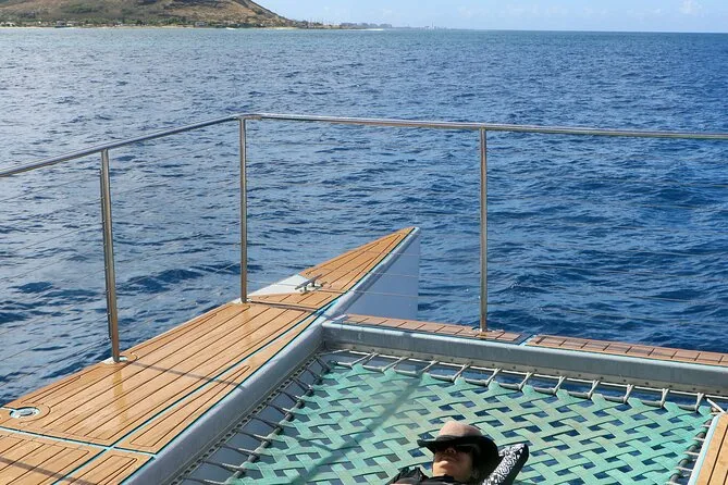 Lunch on board was way better than I expected: teriyaki chicken, kalua pork, rice, even bread pudding with macadamia sauce that made me forget about being damp and salty. People swapped stories over plates piled high; one guy tried poi for the first time and made a face that had half the boat laughing. Our guide Li told us about her favorite childhood beach nearby — she said it’s best at sunrise but wouldn’t give away the name (“locals’ secret,” she winked). The ride back felt quieter somehow; maybe everyone was full or just letting the day sink in. I still think about that view of Oahu’s coast from the deck — sun dropping low and all those colors layered across the sky.