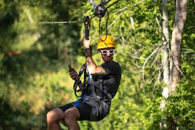 The combined activity lasts most of a day, starting with a one-hour zipline session followed by an afternoon cruise and lunch.