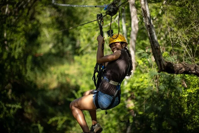“If you scream, the birds will scream back,” our zipline guide grinned as he clipped us in at Coral Crater. I laughed, but honestly my hands were a little sweaty. The first zip felt like jumping into a warm wind — trees below, sun on my face, someone’s nervous whoop echoing behind me. It was over so fast I almost wanted to climb back up and do it again. Three ziplines in total, each one a bit longer than the last. By the end I was actually looking around instead of just hanging on for dear life.