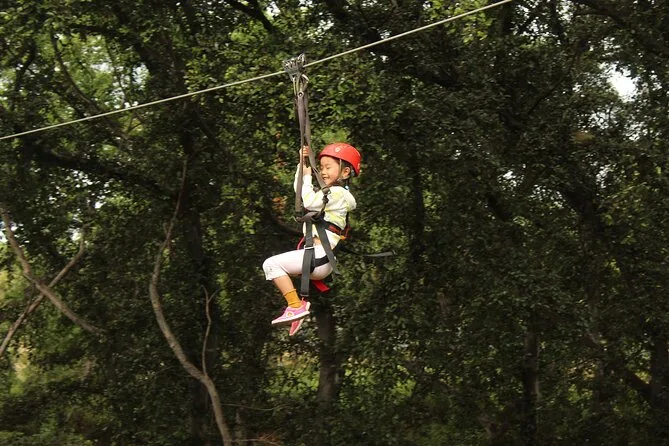 Children can participate but infants must sit on an adult’s lap; some physical fitness is required for ziplines.