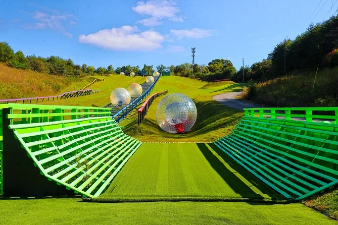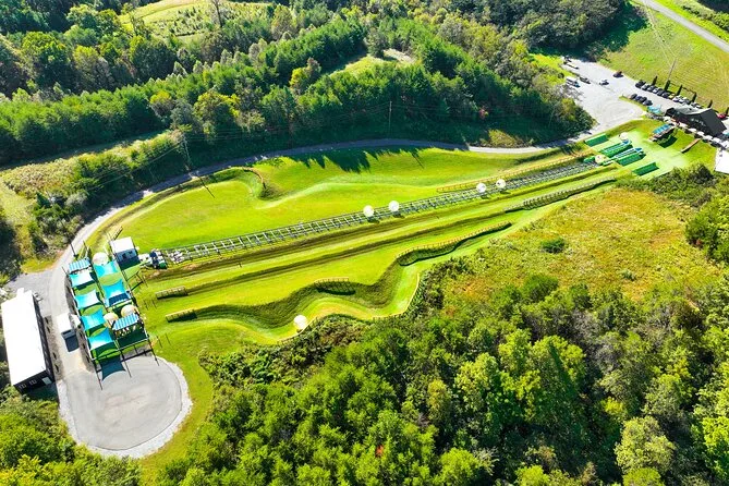 Your experience includes one roll down any of the three unique zorbing tracks at Outdoor Gravity Park in Pigeon Forge—just show up with swimwear and a towel, choose your favorite course (solo or with friends), get help from friendly staff to suit up safely inside the OGO ball, then watch your ride video afterwards before heading home soaked and smiling.