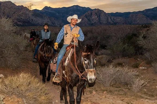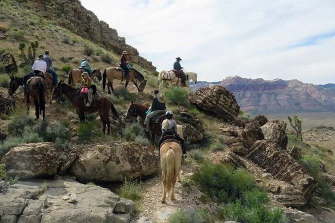 The horseback ride lasts about 90 minutes along scenic trails in Red Rock Canyon.