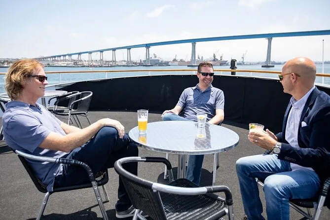 I wandered out onto the deck for air right as we passed Cabrillo National Monument — you could see people walking around up there, tiny against all that sky. The city looked different from out on the bay; quieter somehow, even with all the chatter and clinking inside. At one point I caught myself just staring at Coronado Island, not really thinking about anything except maybe how weekends should always feel like this. Still not sure if it was the champagne or just being out there on the water.