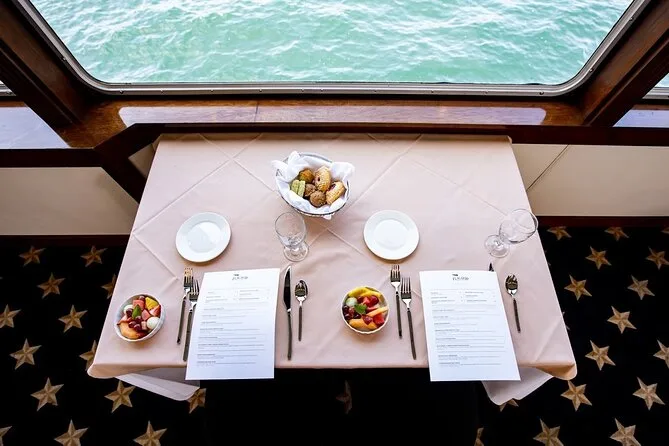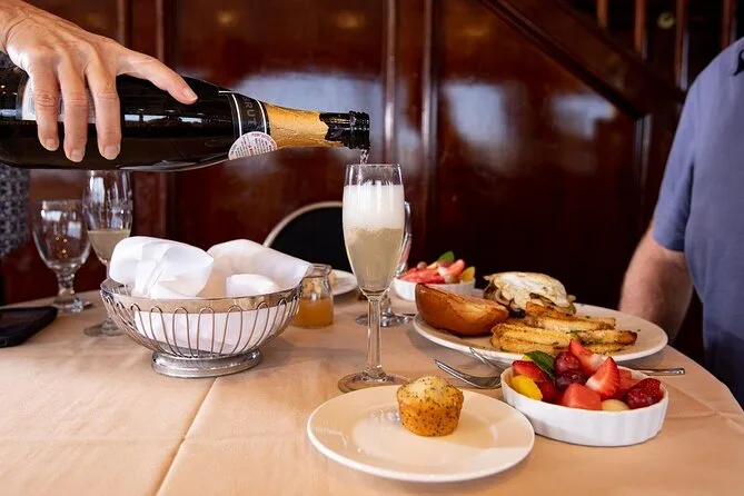 Your day includes a two-hour brunch cruise across San Diego Bay with bottomless champagne and mimosas, unlimited access to buffet stations (including vegetarian options), fresh coffee and tea throughout, live entertainment onboard, plus comfortable indoor dining — all handled by an attentive local crew who make sure your glass never stays empty for long.