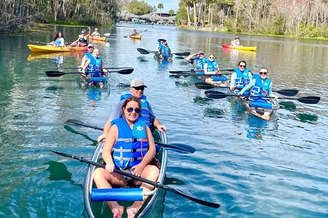 Your day includes use of all kayaking equipment—clear tandem kayaks or alternate options if needed—plus all taxes and fees for your guided two-hour adventure on Silver Springs with an experienced local guide sharing stories along the way.