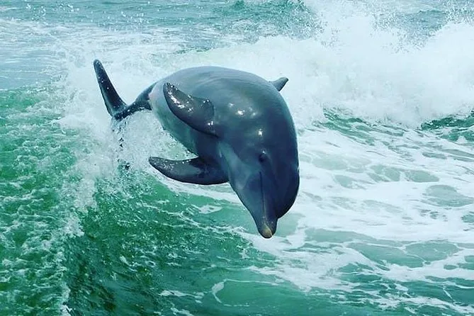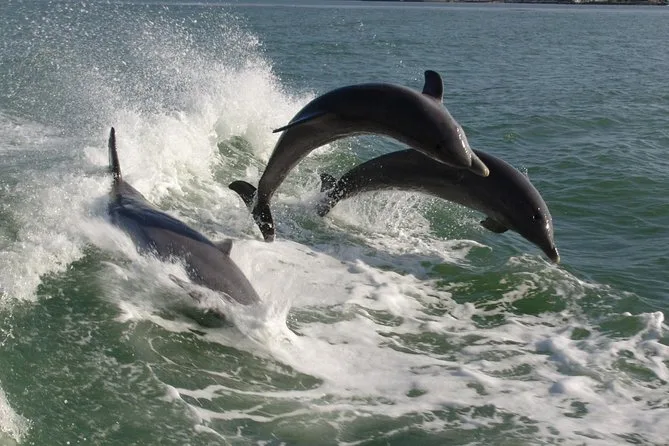 Watch wild dolphins leap behind our boat on st pete’s blue water