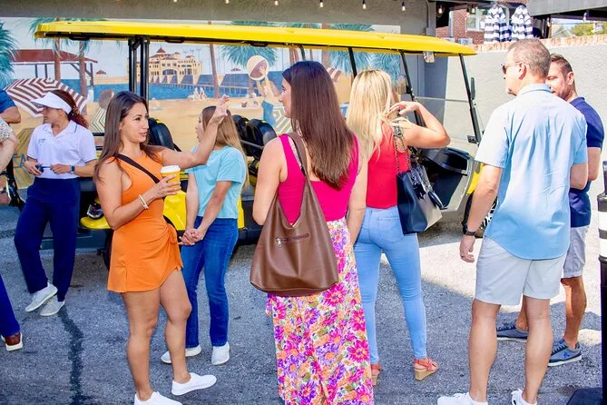 Your day includes meeting your licensed local driver-guide at The Hollander Hotel in downtown St. Pete before setting off in a deluxe street-legal golf cart equipped with Bluetooth stereo and comfy seats. You’ll have unlimited water onboard, use headsets to hear stories clearly as you cruise between stops (with time for bathroom breaks and plenty of photos), plus get discounts at local cafes when you show your booking confirmation—so yeah, lunch or coffee is sorted if you want it along the way.