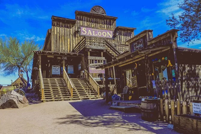 Your day includes bottled water throughout the trip as you explore Superstition Mountain by foot with a local guide before heading to Goldfield Ghost Town where you’ll have time for lunch at Mammoth Saloon or just wander around soaking up old west vibes before returning to Phoenix.