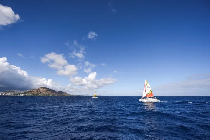 You’ll step barefoot into Waikoloa’s gentle surf before boarding a catamaran with local drinks in hand. Cruise past black lava fields and coconut groves as you watch for sea turtles and volcanic peaks in the distance. As sunset falls over Anaeho'omalu Bay, you might catch that legendary green flash—or just find yourself quietly smiling at how good it feels to be out there.