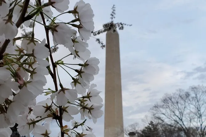 Your day includes comfortable transportation by climate-controlled bus starting from US Navy Memorial Plaza; live commentary from an English-speaking local guide; several guided stops at major memorials; bottled water for everyone; plus time spent walking among peak-bloom cherry trees along DC’s Tidal Basin before returning to your starting point downtown.