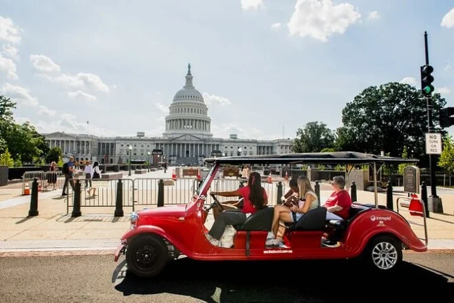 Ride open-air carts past DC’s iconic monuments with stories and stops