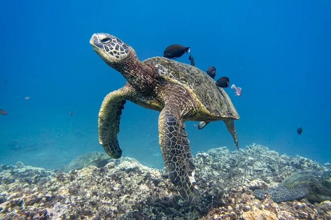 You’ll likely encounter resident Hawaiian green sea turtles while snorkeling near West Maui reefs.