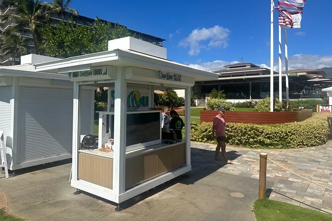 No hotel pickup is mentioned; guests meet at Ka’anapali Beach with parking validation provided.