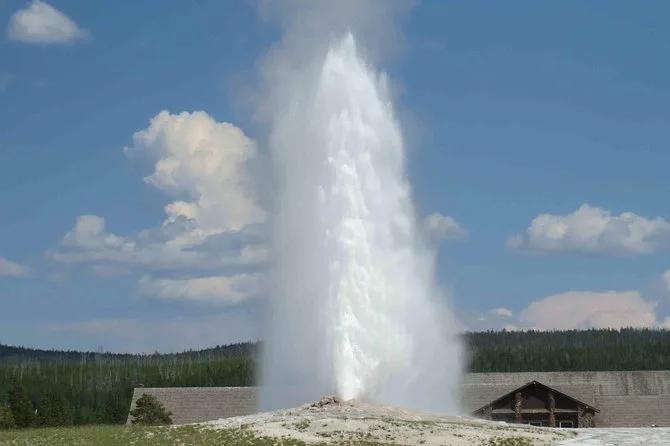 The route passes through wildlife-rich areas such as Hayden Valley where bison, elk, bears, eagles and wolves may be spotted.