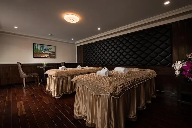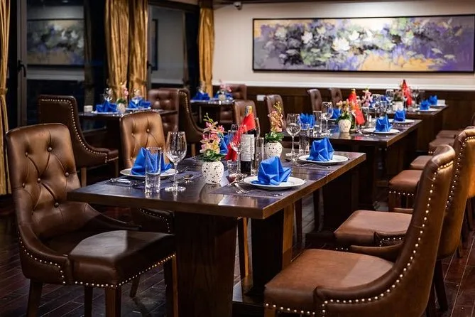 The morning started early in Hanoi’s Old Quarter—our driver showed up right on time, weaving through the narrow streets as scooters zipped by. The ride to Tuan Chau marina took about two and a half hours, with a quick stop halfway for coffee and a stretch. Once we reached the marina, the salty air hit me first. A small tender boat ferried us out to our cruise ship, where the crew greeted us with chilled towels and a sweet welcome drink. I remember Anthony, our guide, chatting about the hidden corners of Halong Bay he’s explored over five years—he seemed to know every rock by name.