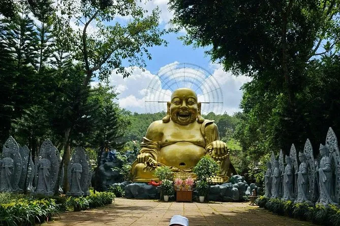 Your day includes all entry fees for activities like go karting and Mongoland photo park, air-conditioned transport between stops around Dalat countryside with an English-speaking guide who shares stories along the way, plus a traditional lunch near Linh An Pagoda before heading back in the afternoon.