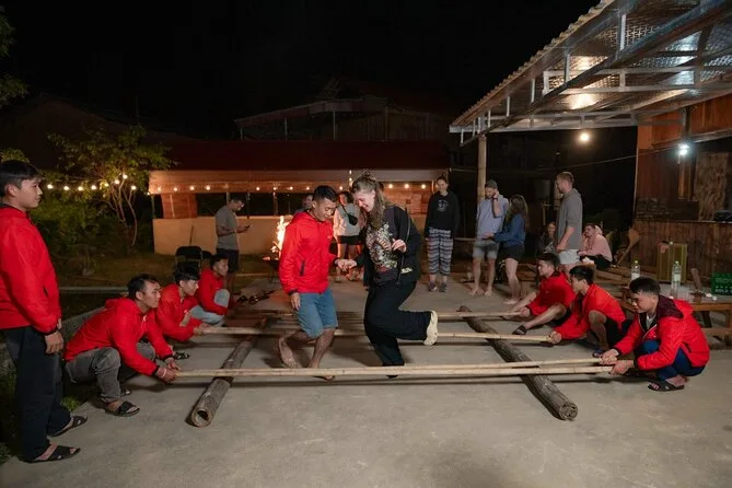 Coffee breaks at scenic viewpoints, Ma Pi Leng Pass walk, boat ride on Nho Que River, traditional games & campfire evenings with locals.