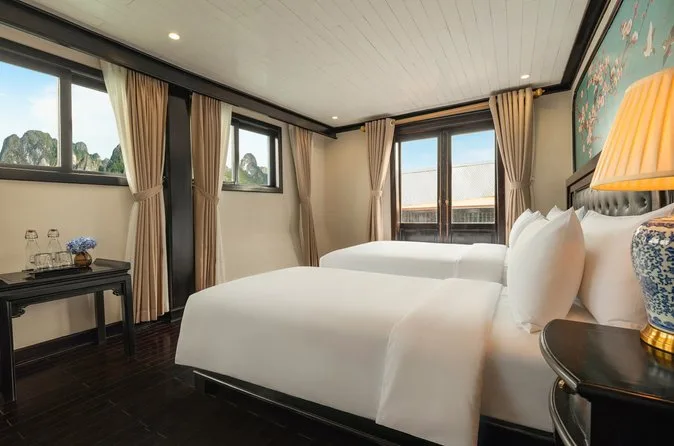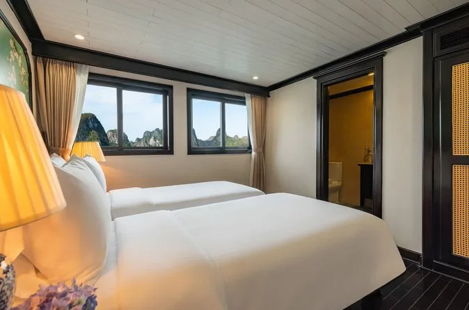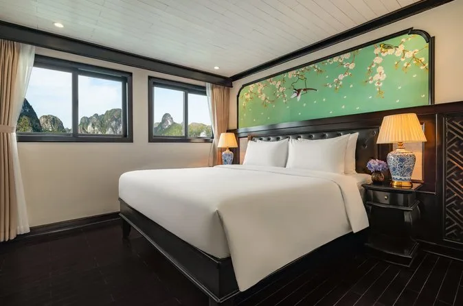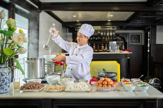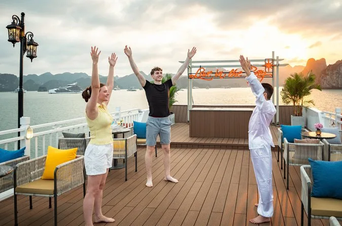 You’ll float through Ha Long Bay’s limestone peaks on a small-group cruise, kayak into quiet corners, wander through Sung Sot Cave’s echoing chambers, and try rolling your own noodles at sunset. With fresh meals onboard and an unexpected herbal foot bath after karaoke, this overnight trip lets you slow down and really feel life on the bay.