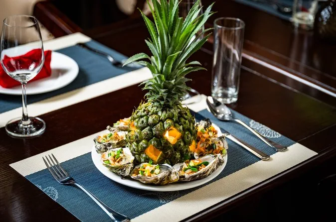 The tour includes kayaking, swimming at Titop Island, exploring Sung Sot Cave, a cooking class, squid fishing, games, karaoke, and visiting a pearl farm.