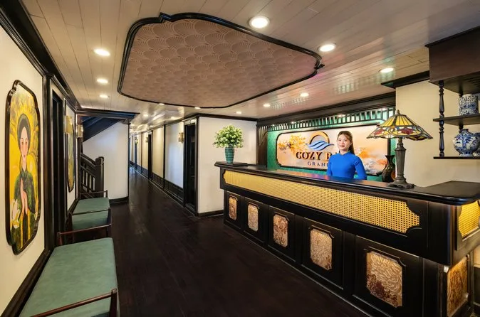 Someone hands me a cold welcome drink as I step onto the CozyBay boat—Mai, our guide, is already joking about her karaoke skills for later. The air smells like salt and something floral (maybe from the garlands on deck?), and I’m not sure if it’s nerves or excitement making my hands fidgety. We leave Tuan Chau Harbor behind, the limestone islands popping up everywhere. Lunch comes out fast—gingery fish, rice that’s stickier than I expected—and everyone sort of quiets down to watch the rocks drift by. I keep catching myself staring at the water instead of eating.
