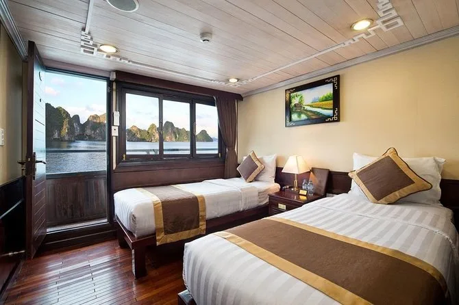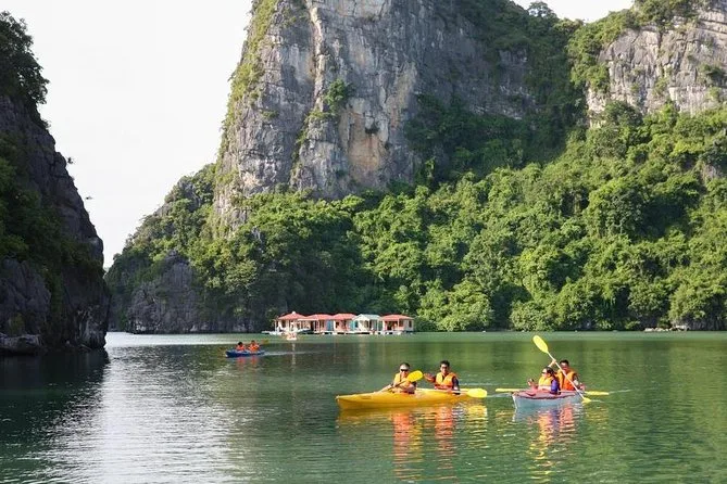 Your trip includes hotel pickup in Hanoi’s Old Quarter area, all entry fees along Halong Bay’s route—including Surprise Cave—plus all meals onboard: lunch and dinner on day one; breakfast and lunch on day two. Kayaking gear is provided as well as bamboo boat service if you prefer not to paddle yourself. Air-conditioned transport returns you to your hotel by late afternoon.