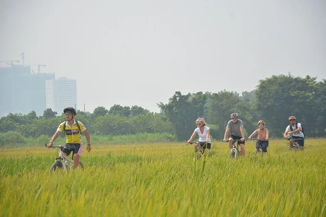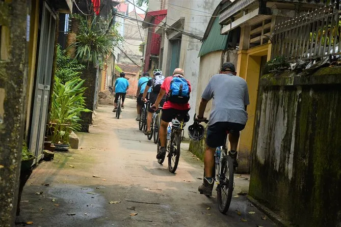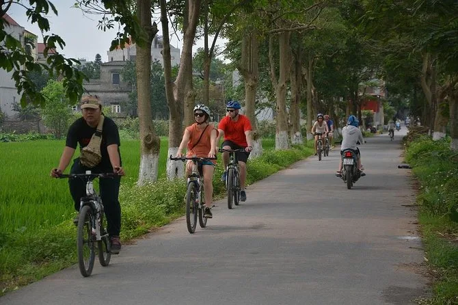 Your half-day includes hotel pickup in Hanoi, use of bicycles sized to fit you comfortably, bottled water along the way plus stops for sugarcane juice or other local drinks. There’s a traditional lunch at a local spot followed by Vietnamese egg coffee or tea before heading back into town together with your guide.