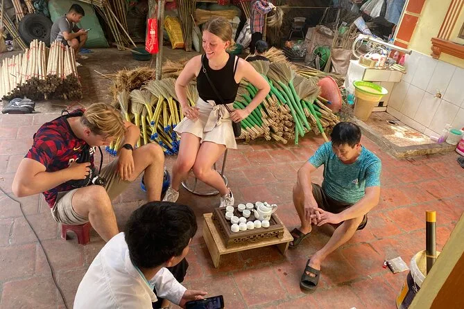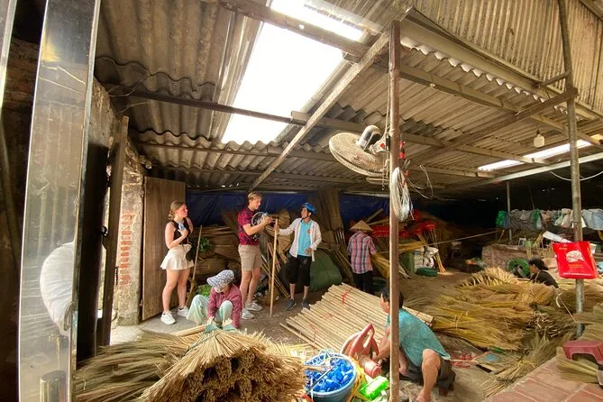 Yes—you’ll visit families making bonsai trees and see broom makers at work in Hoi Phu village.