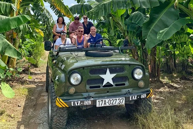 The price covers entrance fees if needed, English-speaking guide, driver and fuel, Vietnam Army Jeep ride, coffee or drinks, plus rain ponchos if needed.