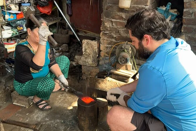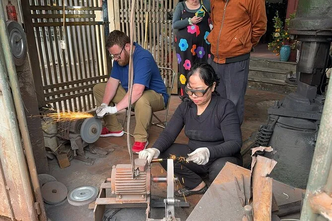 I’d read about this knife-making class in Hanoi but honestly didn’t expect to be so involved. Ms. Lan showed me how to heat the blade until it glowed orange, then we hammered together—her rhythm steady, mine all over the place. She laughed when I flinched at a spark (“Don’t worry!”). There was another artisan helping too; he barely spoke but nodded every time I got something right. The whole workshop felt alive—soot on our faces, hands blackened, but everyone seemed proud of what we were making.