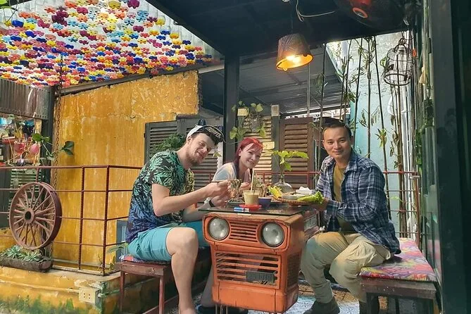 We wandered through backstreets that twisted tighter than I expected — scooters zipped past so close my shirt fluttered. At one point we stopped for phở cuốn, these fresh rice noodle rolls stuffed with beef and herbs. The woman making them didn’t speak English but laughed when I tried to thank her in Vietnamese (I probably butchered it). There was this moment where the group just fell quiet, chewing and listening to distant horns and someone’s radio playing old pop songs. It felt oddly peaceful for such a busy city.