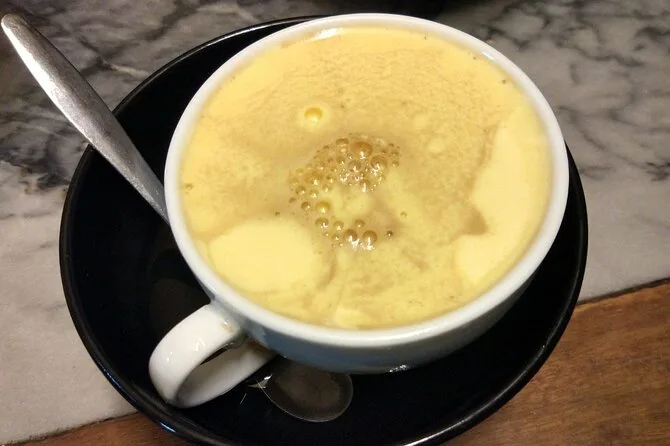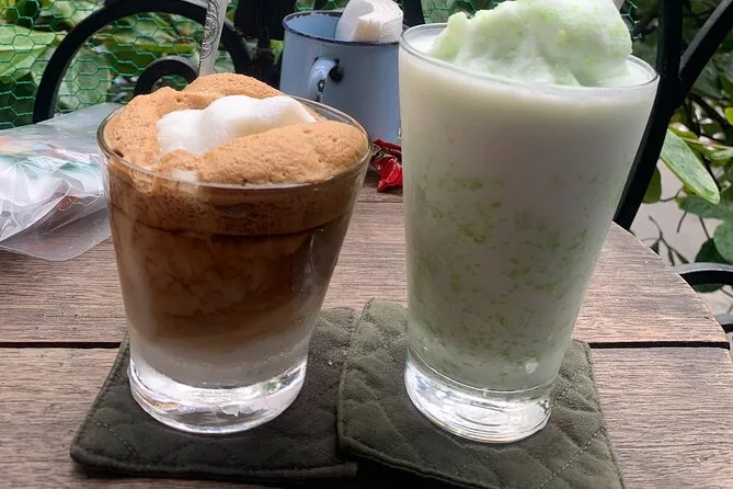 You’ll have local drinks at Train Street café; egg coffee is usually offered but other options are available too.