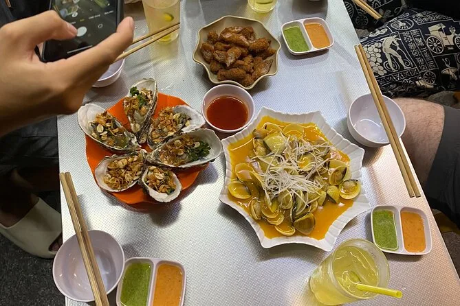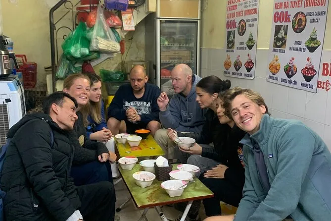 Your evening includes all tastings (enough for dinner), drinks like egg coffee or local specialties at Train Street café, guidance from a knowledgeable local host throughout the walk, plus all fees and taxes covered so you can just show up hungry and curious.