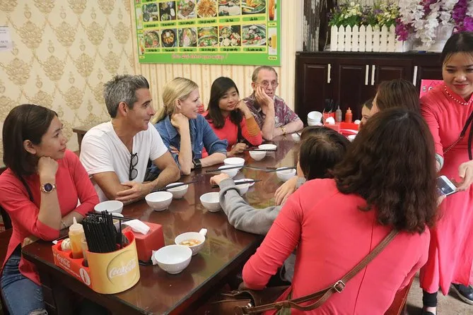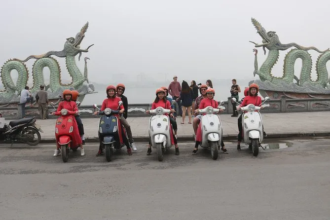 Hop on a vintage Vespa with local female riders in traditional Ao Dai for an up-close look at Hanoi’s lively streets and peaceful countryside. Ride across Long Bien Bridge, taste fresh fruit at a family farm, visit historic sites like the B52 lake crash site, and sip egg coffee near Train Street—all in one unforgettable day.