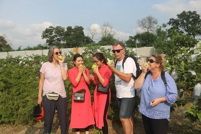 The air changed once we hit the countryside—cooler, carrying hints of wet earth and fresh-cut grass. We rolled past rice paddies so green they almost glowed, stopping to chat with farmers who grinned at our group. At a family fruit farm tucked between fields, we tasted just-picked guava while the owner explained how rice wine is made (the sharp scent drifted from a clay pot nearby). There was laughter when one of us tried to help peel a pomelo and failed miserably.
