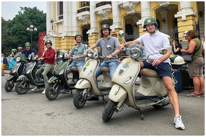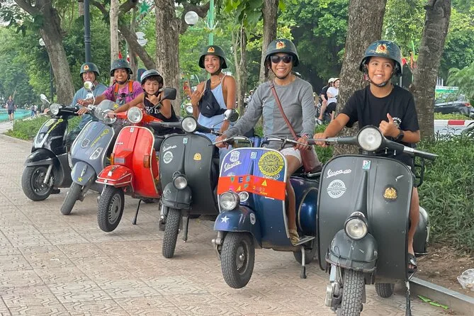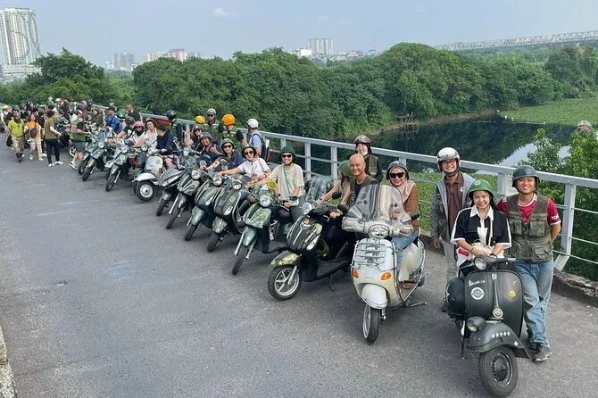 You’ll ride pillion on a classic Vespa through Hanoi’s tangled backstreets and French boulevards, sip egg coffee as trains thunder by on Train Street, cross Long Bien Bridge with sweeping Red River views, and taste street food favorites with locals—all with pickup included. Expect moments that stick with you long after you leave.