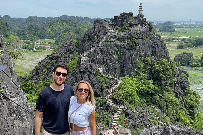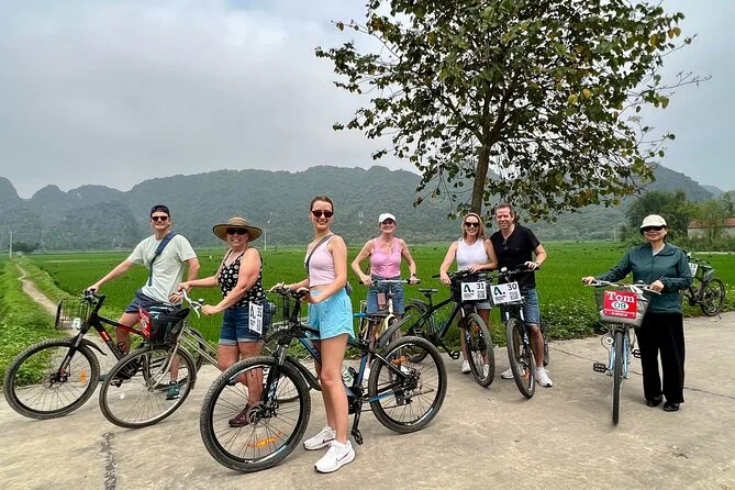 You’ll hike Mua Cave, cycle through rice fields, visit local families and markets, explore pagodas, and take boat rides at Thung Nham bird reserve and Tam Coc.