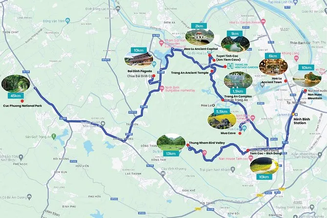 The tour lasts around 11-12 hours including transfers between Hanoi and Ninh Binh.