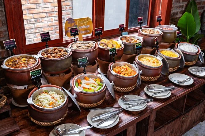 Yes, a buffet lunch with local specialties is included at Trang An Heritage Garden restaurant.