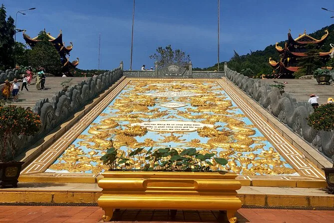 After that, we headed into the forest for Tranh stream. It was June so the water actually rushed over our toes—cold enough to make you yelp but not enough to keep you out. Minh told us how locals come here to picnic or just escape the heat. I liked watching families pick their way along the rocks, carrying plastic bags full of snacks. Then came Họ Quốc pagoda: all gold and red against this wild blue sky, with incense curling up in little threads. There was a breeze off the sea behind it that made everything feel lighter somehow.