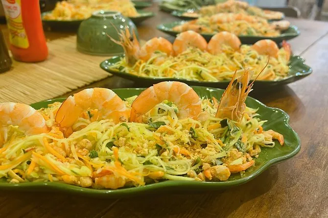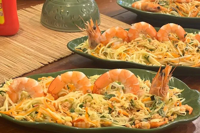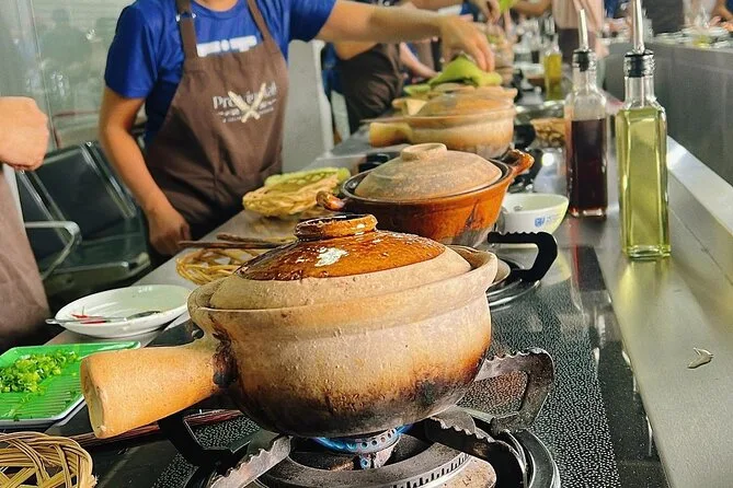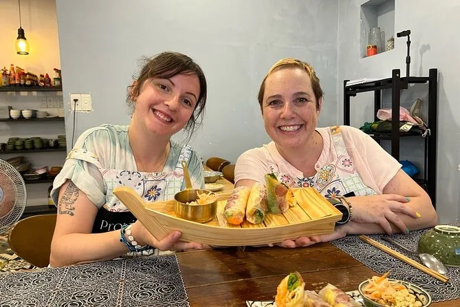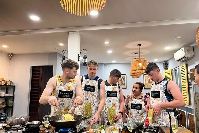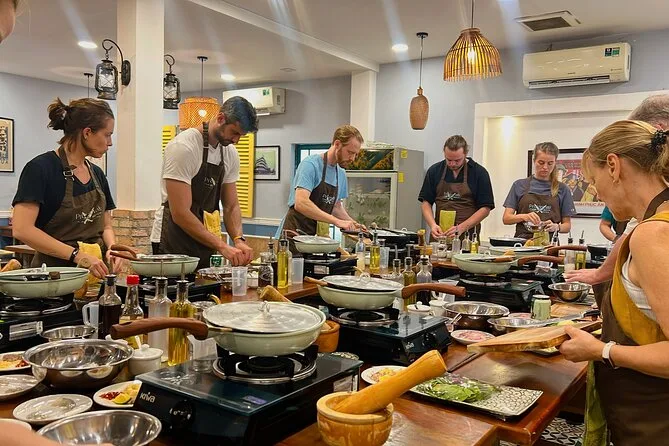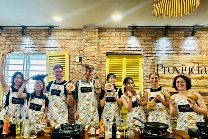 Your day includes guided wet market tour at Ben Thanh Market led by a local chef, private cook station and ingredients for each guest during your three-course Vietnamese cooking class with dessert, transportation from market to kitchen, all gratuities covered, vegetarian options if needed, an elegant recipe book to bring home — plus you’ll share your own meal together over a complimentary cocktail before heading out into Saigon again.
