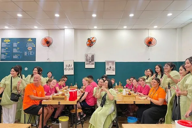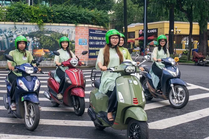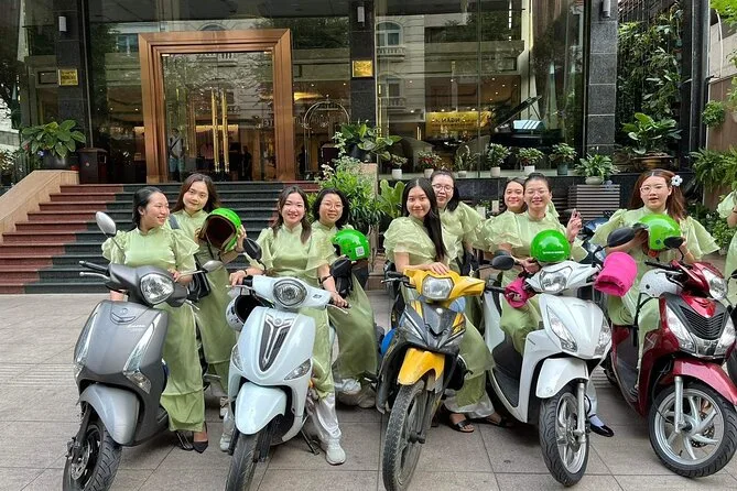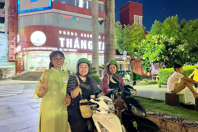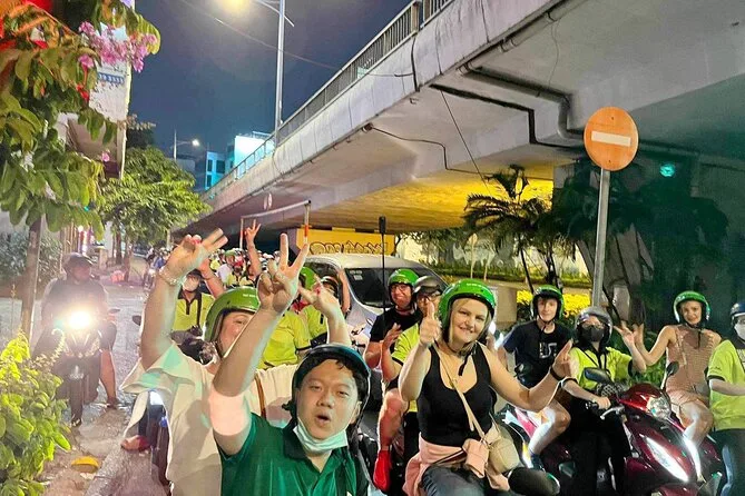 Your evening includes hotel pickup and drop-off within central districts of Ho Chi Minh City (Saigon), dinner featuring local dishes like Hue noodle soup and banh mi, all rides by motorbike with friendly English-speaking guides who provide open-faced helmets for safety—and rain ponchos if needed—plus accident insurance throughout your journey.