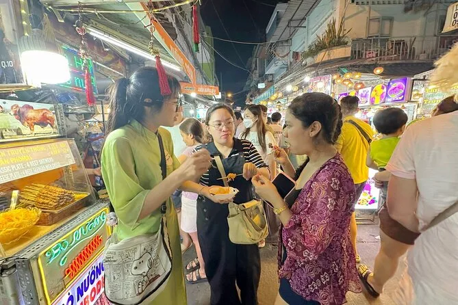 You’ll dive into Saigon’s nighttime energy by motorbike—meeting locals over bowls of spicy Hue noodle soup, wandering through the city’s flower market, sipping coconut juice at a floating market in District 4, and tasting banh mi along busy streets. Expect laughter with your guide and moments that stick with you long after you’re home.