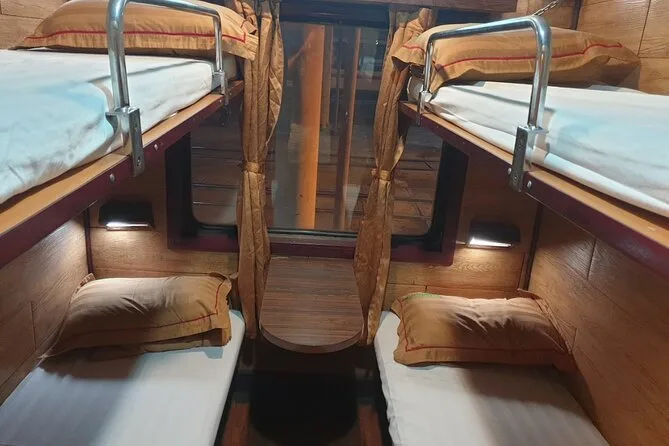 The distance is about 320 km; travel time is roughly 6 hours each way by sleeper morning bus.