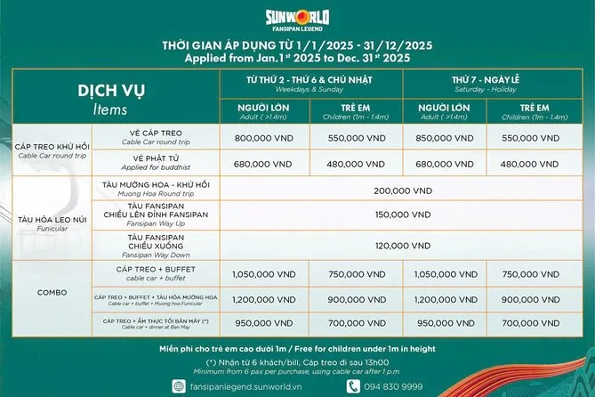 A buffet lunch at the mountaintop restaurant is available as part of the Fansipan experience but ticket cost is separate from tour price.