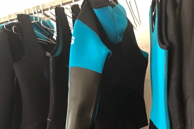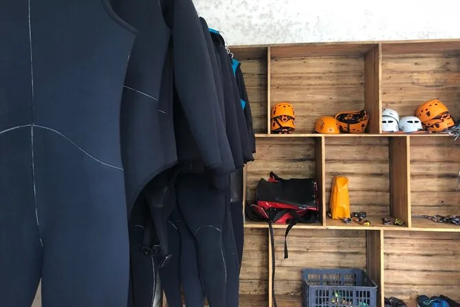 The tour includes harnesses, life jackets, helmets, ropes, carabiners, wetsuits, and other specialized gear.