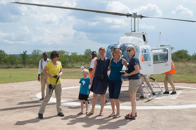 Helicopter ride over Victoria Falls with local pickup and wild encounters